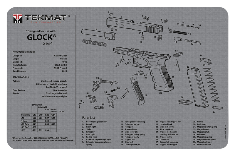 TekMat Glock Gen 4 Cleaning Mat Gray Rubber 11"x17" - TEKR17GLOCKG4GY