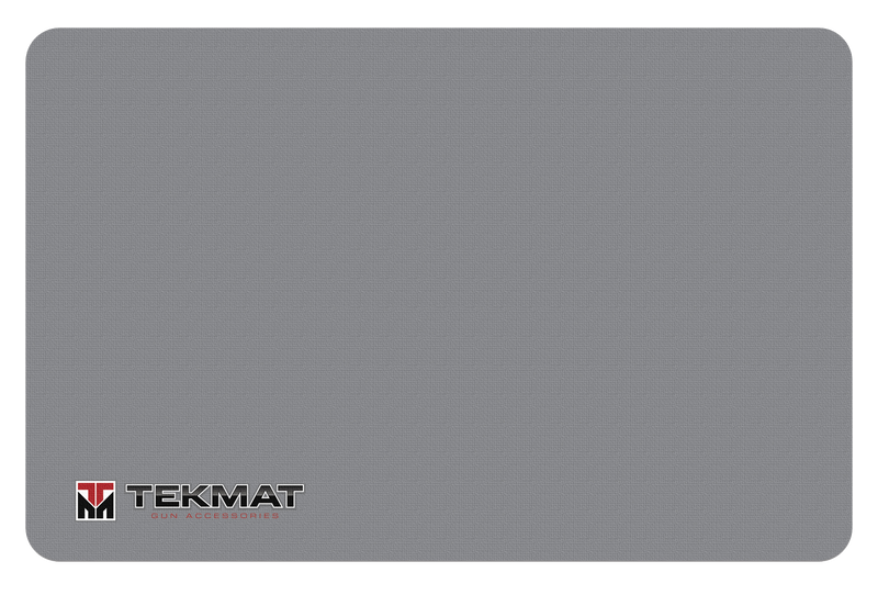 This TekMat cleaning mat is an 11" x 17" rubber mat designed to protect firearms during disassembly and cleaning. The gray rubber construction guards against chipping and scratching of handguns, providing a durable work surface for gun maintenance and restoration.