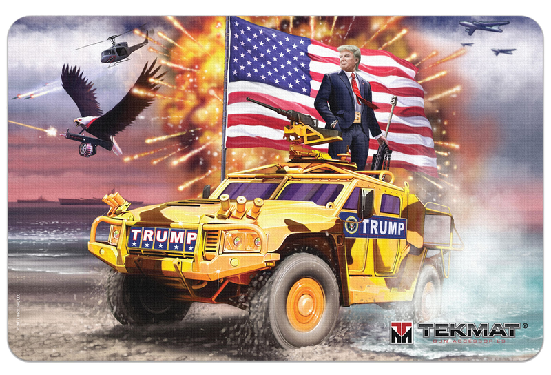 This TekMat cleaning mat features a Trump Freedom Portrait design printed on a durable rubber surface. The 11" x 17" mat provides a protective work surface that guards against chipping and scratching during firearm maintenance and cleaning.