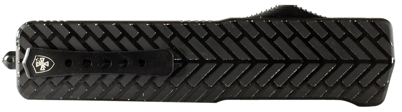 The Templar Knife Premium LW is a lightweight folding knife featuring a 3" D2 steel drop point blade with black oxide stonewashed finish and a slider button opening mechanism. The 4.50" black herringbone aluminum handle provides a comfortable grip, with an overall length of 7.50" and total weight of 3.40 oz. Designed for everyday carry and general cutting tasks.