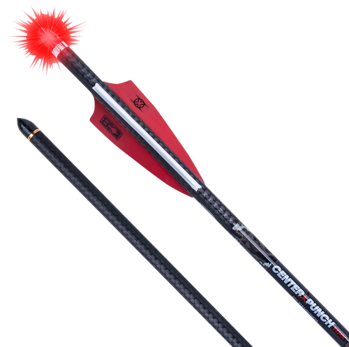 The EVO-X CenterPunch is a carbon fiber crossbow arrow constructed from 33 MSI modulus carbon with an exclusive LAZER-TECH carbon weave wrap, fletched with slightly offset 3.5" Bohning X Vanes, and equipped with TenPoint's Alpha-Nock HP with LED unit that lasts approximately 8 hours. Each arrow is inspected to .001" straightness, features a 68-grain insert, and has a 17.5% front-of-center balance. This 20-inch arrow is designed for maximum accuracy in modern crossbow systems.