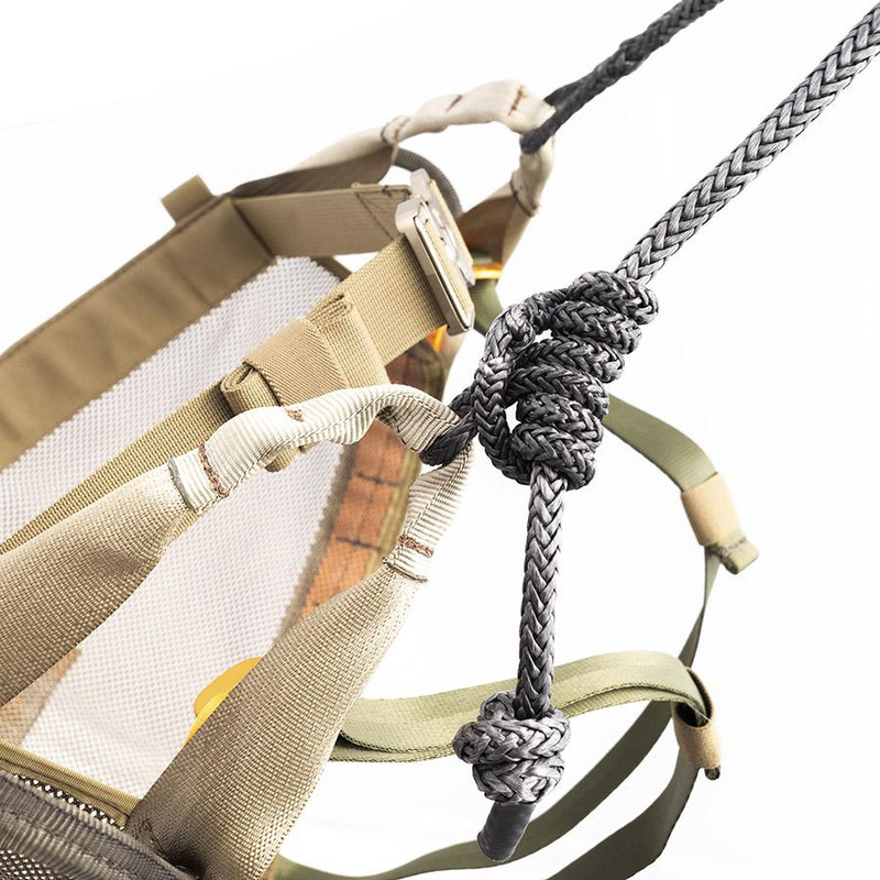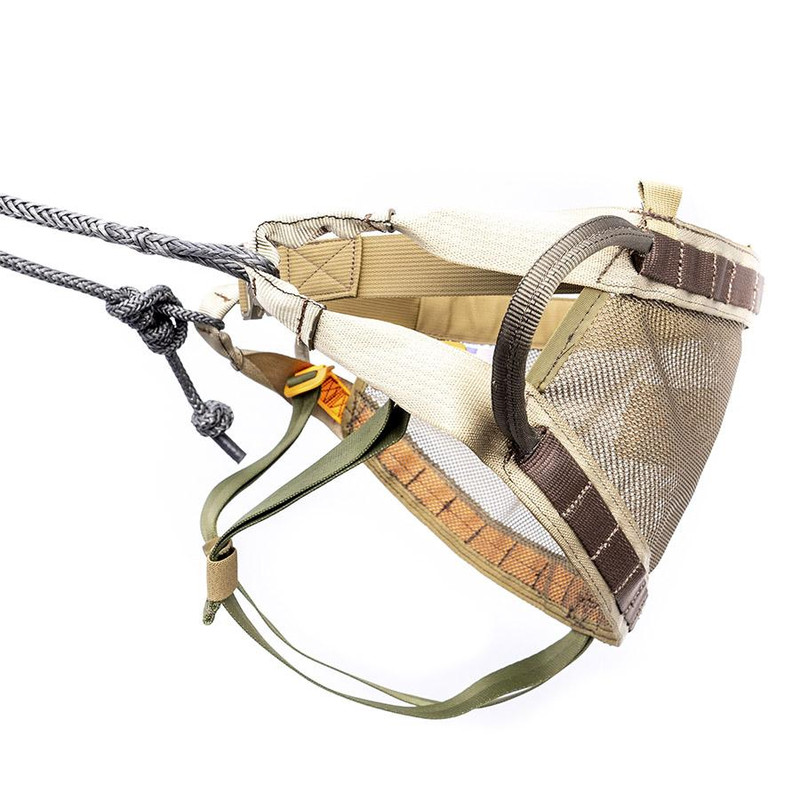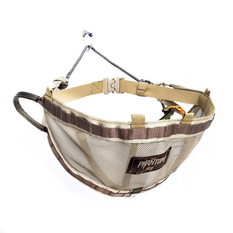 The Phantom is an ultralight hunting saddle featuring 4 patent-pending technologies designed for all-day comfort and ease of use. It accommodates waist sizes from 28" to 40", has a 300 lbs weight capacity, and is constructed from waterproof nylon with a limited lifetime warranty. This saddle represents an evolution in lightweight tree saddle hunting equipment.