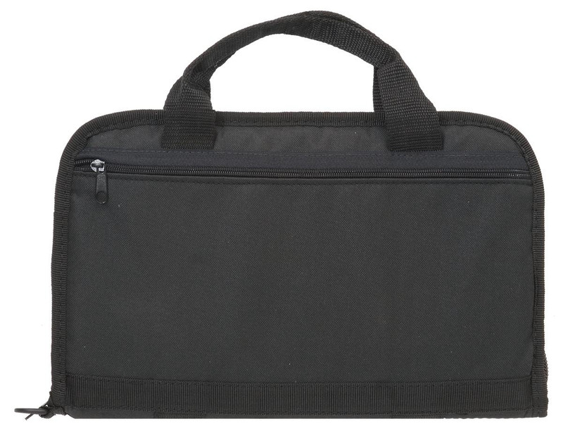 This 14-inch tactical pistol case features a black finish and includes dedicated magazine pockets for secure storage and transport. Compact design measures 14.8" x 10" x 2" and is suitable for handgun and accessory protection.