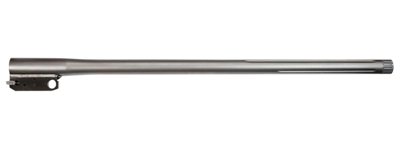 Stainless steel fluted rifle barrel for Thompson Center Encore frame rifles chambered in 500 S&W Magnum. Features a 20-inch length with 11/16x24 threaded muzzle, drilled and tapped for scope mounts, and requires no gunsmithing for installation. Factory test-fired at 100 yards to verify accuracy.