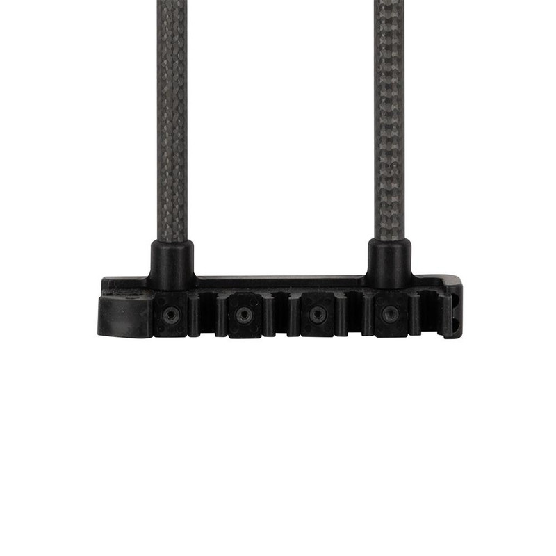 A 5-arrow right-hand quiver constructed from aluminum and woven carbon fiber for lightweight durability. Features a larger hood designed to accommodate modern fixed-blade and expandable broadheads, with a built-in quiver hanger for convenient attachment to hooks or limbs while hunting. Includes a secondary arrow retention system and exclusive 3-way adjustment for customized fit.