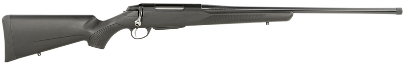 The Tikka T3 Lite is a bolt-action rifle chambered in .30-06 Springfield with a 22.4" matte blued threaded barrel and 3+1 round capacity. It features a blued, drilled and tapped steel receiver and fixed black synthetic stock, weighing 6.4-6.6 lbs. This versatile big-game hunting rifle includes a single-stage trigger and comes with no sights, allowing for optic mounting.