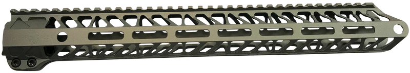 The Timber Creek Outdoor Enforcer is a 15-inch free-floating handguard designed for AR-15 platforms, constructed from lightweight aluminum with a durable Flat Dark Earth Cerakote finish. Features M-LOK mounting slots for accessories and measures 2.7" wide by 1.7" tall. Installation is straightforward on standard AR-15 receivers.