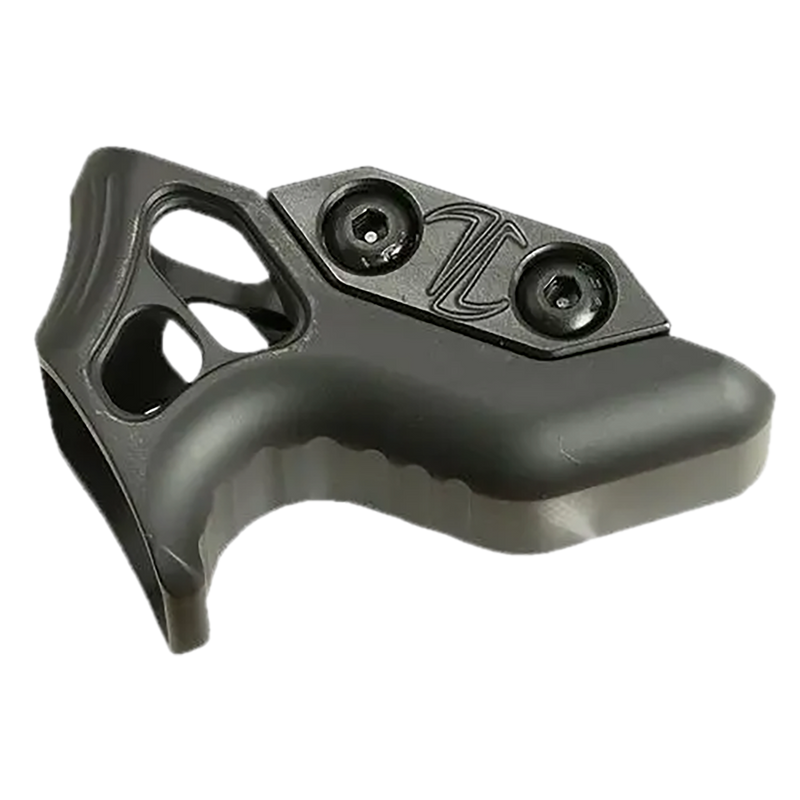 The Enforcer Mini Angled Foregrip is a compact vertical grip machined from billet aluminum, measuring 4.8" long with a 3.6" width and 1.3" height. Designed for AR-15 style rifles with M-LOK or Picatinny rail compatibility, this angled foregrip provides ergonomic control and improved handling. The black anodized finish resists corrosion and wear.