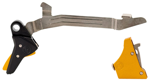 The Timney Alpha Competition trigger is a single-stage, flat-faced trigger designed for Glock Gen 3 and Gen 4 pistols with a 3-pound pull weight. Constructed from aluminum and steel materials, this trigger provides improved performance while maintaining Glock reliability and requires no gunsmith for installation. Compatible with most standard Glock frames including G17, G19, G22, G23, and G34 models.