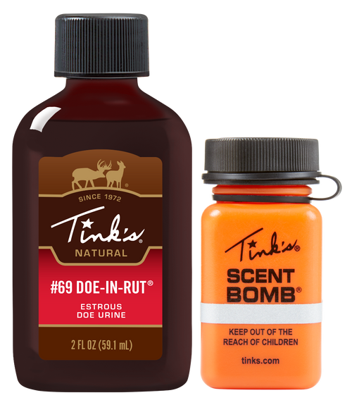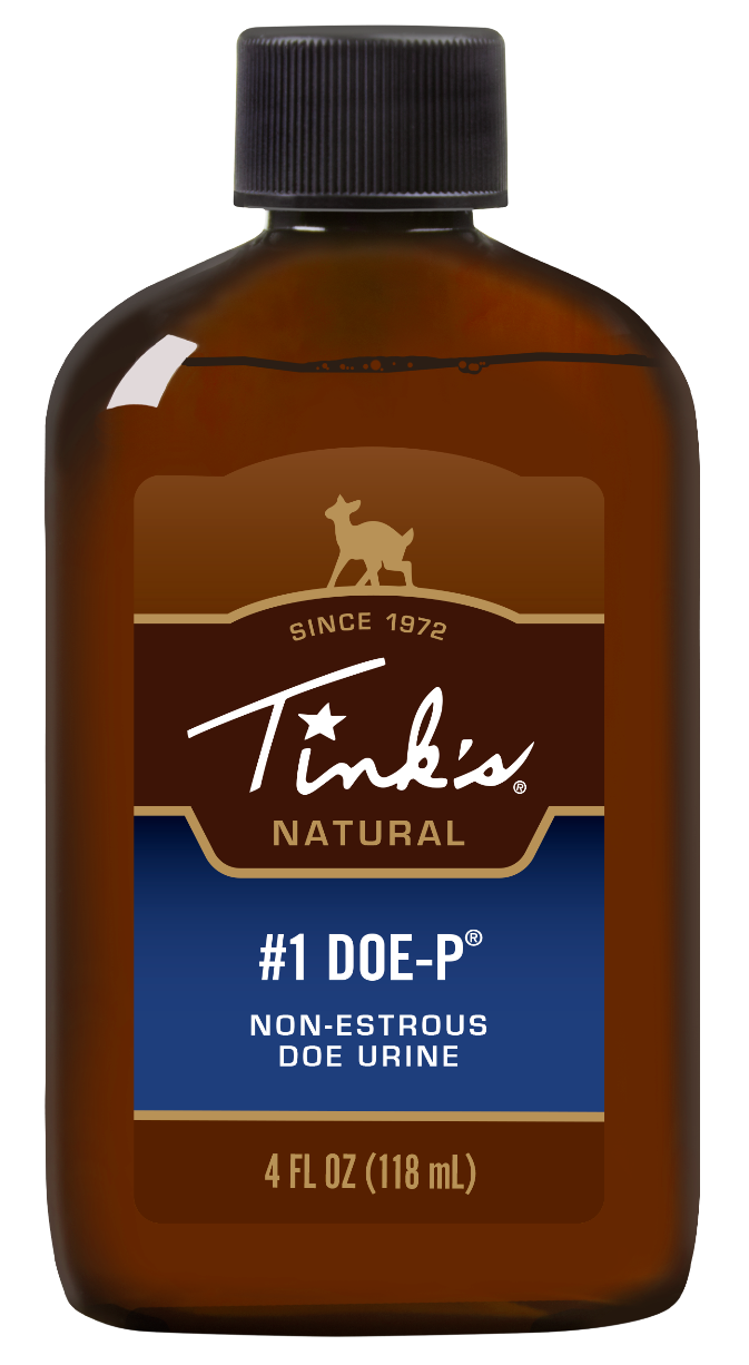 Tinks #1 Doe-P is a 100% non-estrous doe urine formulated as an all-season deer lure designed to attract both bucks and does. The product comes in a 4 oz plastic bottle and creates a calming scent that encourages deer to linger in the area. Compatible with Tinks application accessories including scrape ropes, scent wicks, drippers, sponges, reels, and draggers.