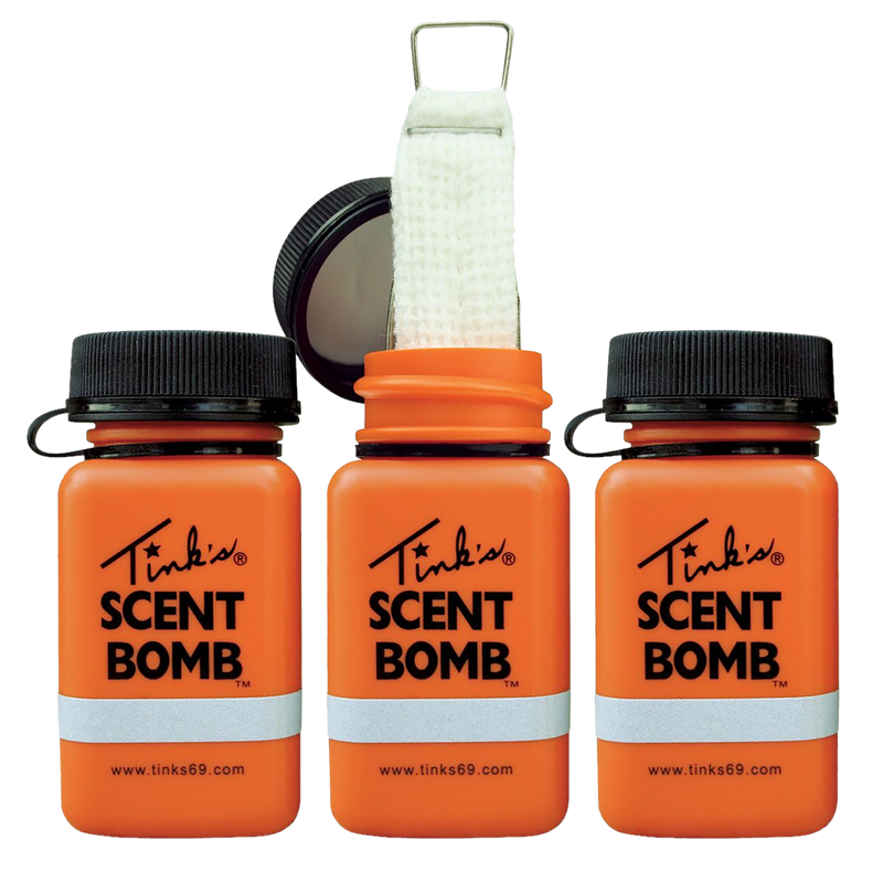 The Tinks Scent Bomb is a jar-based scent dispenser designed to attract all game species during hunting. This 3-pack contains three 1oz jars of scent attractant for use in the field. The compact design allows for easy placement and effective scent dispersal.