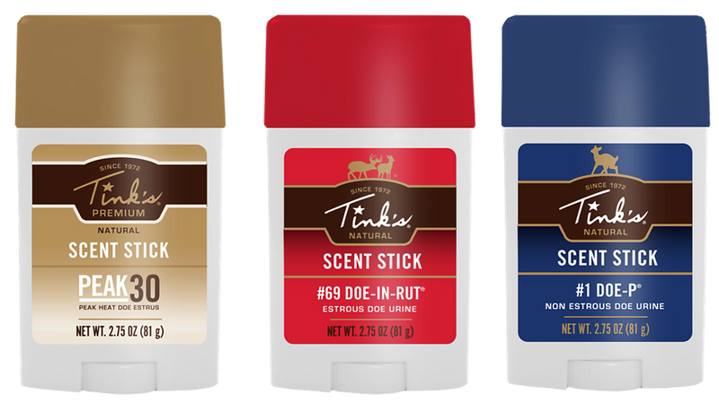This 3-pack of Tinks deer lure scent sticks is designed for all-season hunting applications. Each stick dispenses scent to attract deer during hunting season. The compact stick format allows for easy placement and portability in the field.