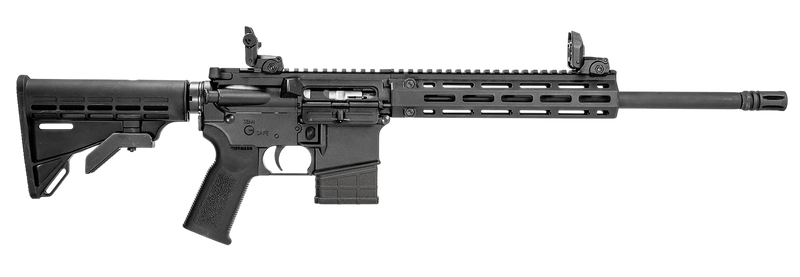 Semi-automatic rimfire rifle chambered in 22 LR with a 16" threaded barrel and 10+1 round capacity. Features an AR-platform design with M4 collapsible stock, composite M-LOK handguard, flip-up front and rear sights, and weighs 5.04 lbs. Ideal for recreational shooting and training with low recoil and affordable ammunition.