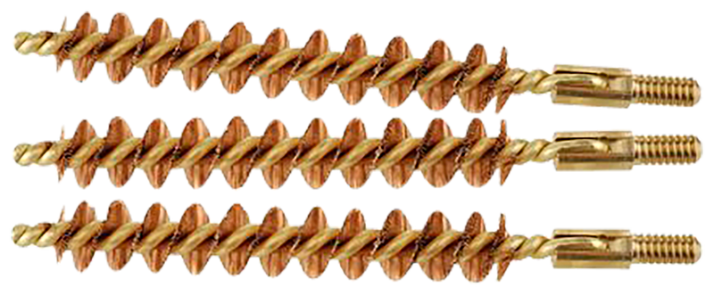 This Tipton bore brush set includes 3 brass brushes with bronze bristles designed for cleaning 30/32 caliber rifle barrels. The brushes are sized to fit standard cleaning rod connections and effectively remove fouling and residue from rifled bores. Brass construction is safe for all barrel steel types.