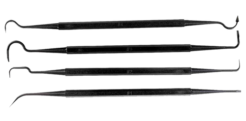 Set of four polymer cleaning picks with assorted tip configurations, providing eight different combinations to access tight and hard-to-reach areas in firearms. High-strength polymer construction prevents scratching delicate surfaces. Each pick has different configurations on each end for versatile cleaning applications.