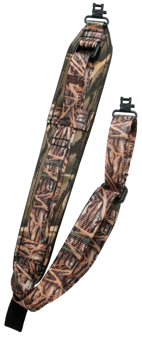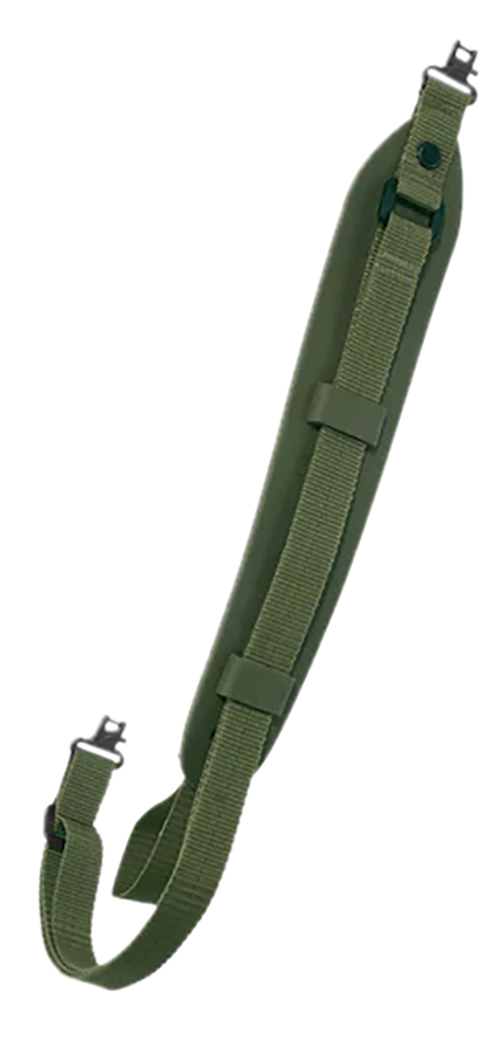 This padded nylon sling from Outdoor Connection provides basic firearm carry functionality without swivel attachments. The padded design offers comfort during extended wear, making it suitable for hunters and shooters who need a simple, reliable sling option.