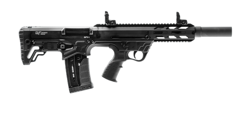 12 Gauge semi-auto shotgun with 3" chamber, 18.5" threaded barrel, and 5+1 capacity. Features bronze cerakote steel barrel, aluminum receiver with Picatinny rail, adjustable flip-up front and rear sights, and black synthetic stock. Weighs 8.50 lbs and ships with hard case and magazines.