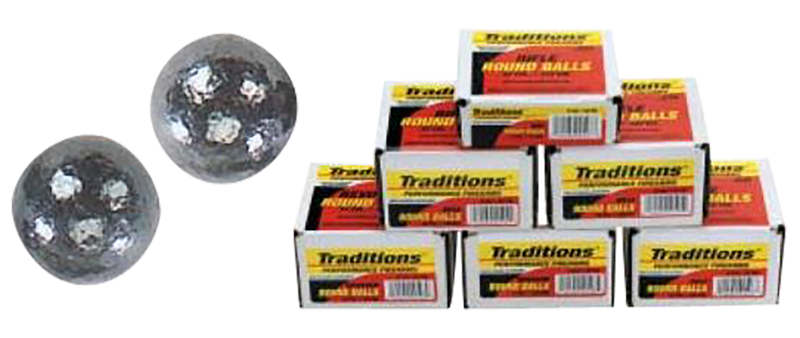These Traditions round balls are designed for 50 caliber muzzleloading rifles and feature a 177-grain lead ball construction. Each box contains 20 round balls, providing consistent projectiles for black powder shooting. These traditional round balls are the standard ammunition choice for classic muzzleloaders and historical firearms.