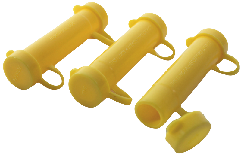 The Traditions EZ Loader is a speed loader designed for 50 caliber black powder rifles, holding 50 grain pellets per loader. This 3-pack of yellow loaders simplifies the loading process for muzzleloading enthusiasts by pre-measuring and organizing powder charges. The compact design fits easily in a shooting bag or range kit.