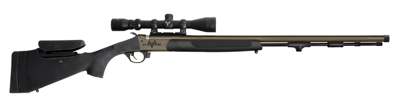 This is a 50 caliber break-action muzzleloader with a 26" fluted and threaded barrel featuring VAPR rifling (1:24 twist). The rifle comes mounted with a 3.5-10x44mm duplex reticle scope and features an adjustable cheek piece, adjustable length of pull synthetic stock, 209 shotgun primer ignition, and an Elite XT trigger system. Drilled and tapped for additional accessories, weighs approximately 5.75-7.1 lbs with an overall length of 42".