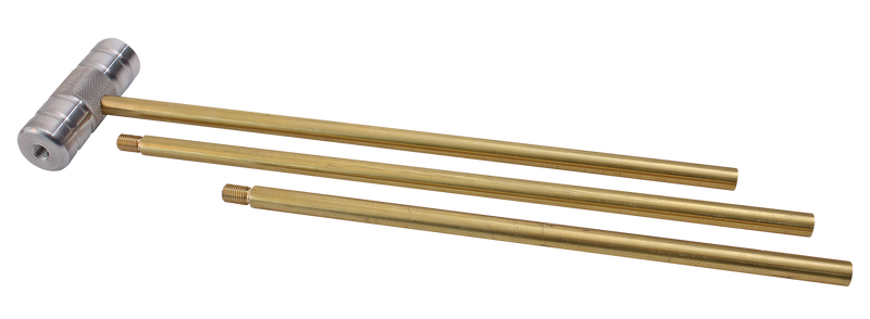 The Traditions Ultimate Loading/Cleaning Rod is a sturdy brass rod designed for muzzleloader maintenance and loading at the range or in the field. It breaks down into 4 separate pieces for easy storage and transport, and features a removable T-Handle with 2 positioning options for added comfort. The rod has 10/32 threads at the end for compatibility with cleaning brushes and other accessories.