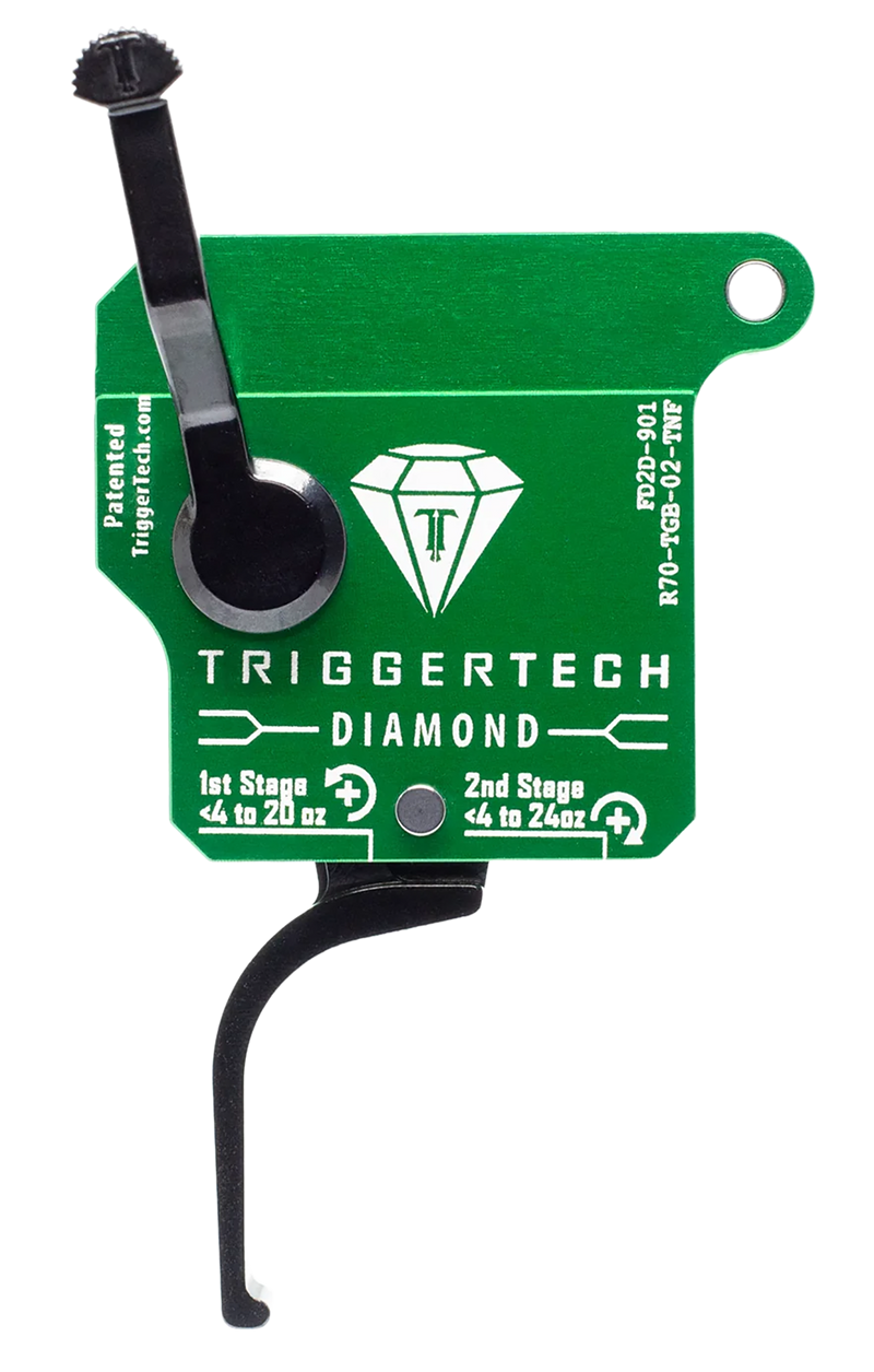 TriggerTech Diamond Two-Stage Flat Clean Trigger, 0.50-2.80 lbs, Green with Black Parts, Remington 700 Right - R70TGB02TNF