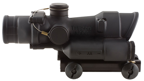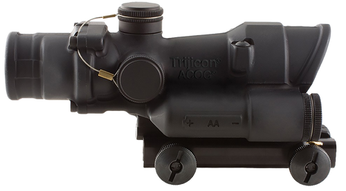 The Trijicon ACOG is a 4x32mm magnified riflescope with an illuminated red horseshoe reticle calibrated for .223/5.56 NATO ammunition out to 800 meters. Featuring dual illumination via fiber optics for daylight use and tritium for low-light conditions, this scope is fog, shock, and waterproof with multi-coated optics. Includes TA51 flattop mounting adapter and accessories.