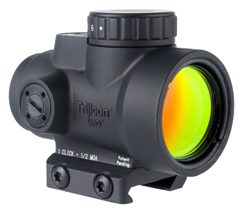 The Trijicon MRO SD is a 1x25mm sealed miniature reflex sight designed for rifles, carbines, and shotguns with a 2 MOA green dot reticle for fast target acquisition. This optic maintains the durability and compact footprint of the original MRO while featuring an enhanced optical design optimized for pairing with magnifiers and night vision devices. The sight is waterproof with infinite eye relief and 0.50 MOA adjustment increments.
