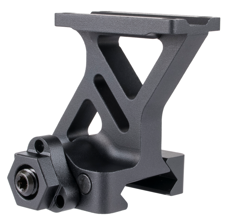 This is an extra high quick-release mount designed specifically for the Trijicon MRO red dot sight. The mount features an anodized aluminum construction with a matte black finish, providing durability and corrosion resistance for field use.