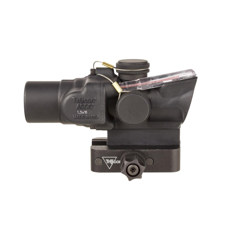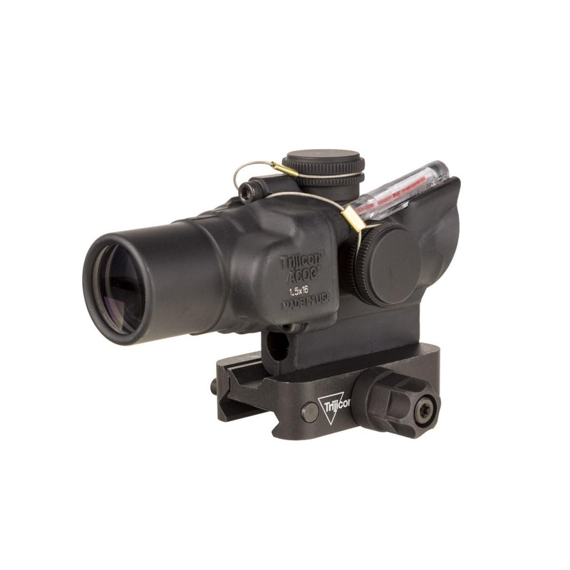 The Trijicon ACOG 1.5x16S is a compact, fixed magnification riflescope with 1.5x power and 16mm objective lens, optimized for 9mm PCC (Pistol Caliber Carbine) shooting. Dual illumination combines fiber optics for automatic brightness adjustment and tritium-phosphor lamp for low-light performance without battery dependence. The scope includes a Q-LOC mount, weighs 7.2 oz, offers 39 ft field of view at 100 yards, and is waterproof, shockproof, and backed by a limited lifetime warranty.