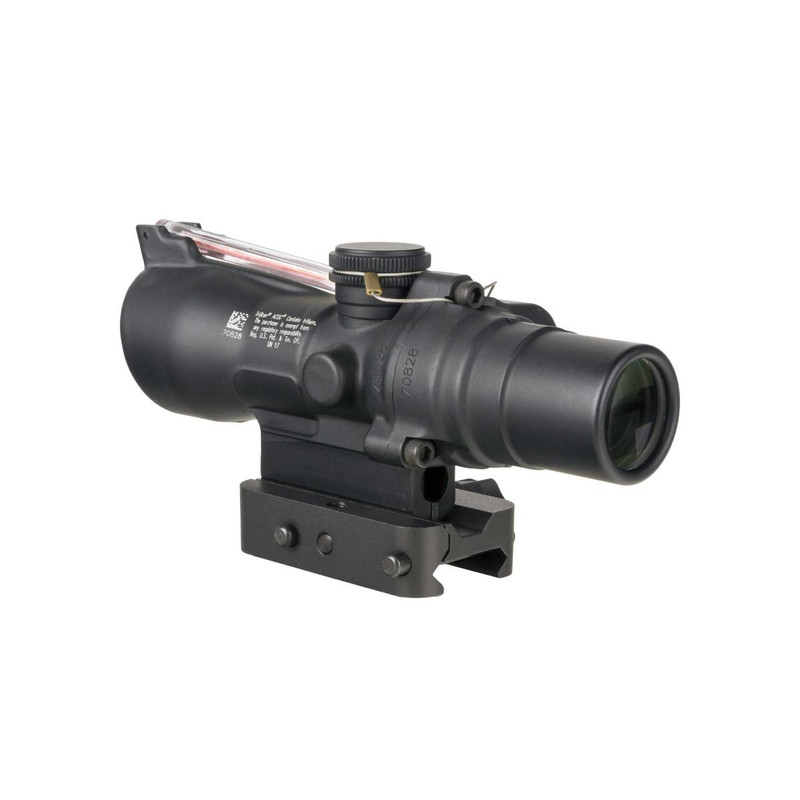 The Trijicon ACOG 2x20 is a fixed magnification riflescope designed for firearms with limited mounting space, such as submachine guns. It features a dual illuminated RTR .223 reticle for enhanced target detection in various lighting conditions and includes the Q-LOC mount system with tool-less one-handed operation. The scope is waterproof, shockproof resistant, and constructed from Mil-Spec rated 6061-T6 aluminum with multi-coated optics.