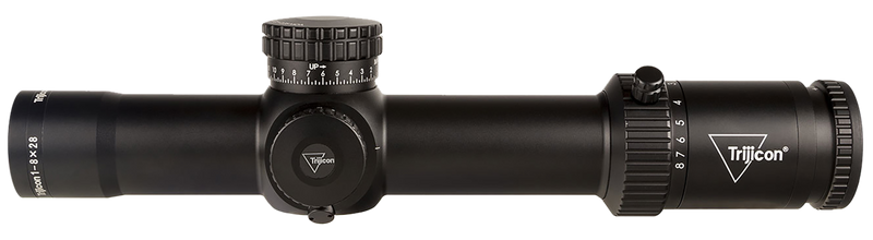 The Trijicon Credo HX is a 1-8x28mm first focal plane riflescope with a 34mm tube and dual red/green LED illuminated MOA segmented circle reticle. Features multi-coated optics, exposed locking adjusters, 3-4 inches of eye relief, and weighs 25.6 oz. Fog-proof, waterproof, and shock resistant with 1/4 MOA adjustments for precision shooting.