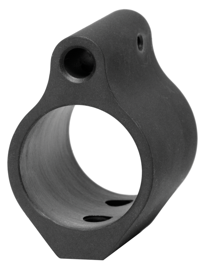 Low-profile gas block designed for AR-15 rifle barrels with .750" gas block seat, compatible with 5.56 NATO. Machined from 4140 pre-hardened steel with MIL-STD Manganese Phosphate finish, allowing clearance for most aftermarket rails. Secured to barrel with two set screws; gas tube roll pin not included.
