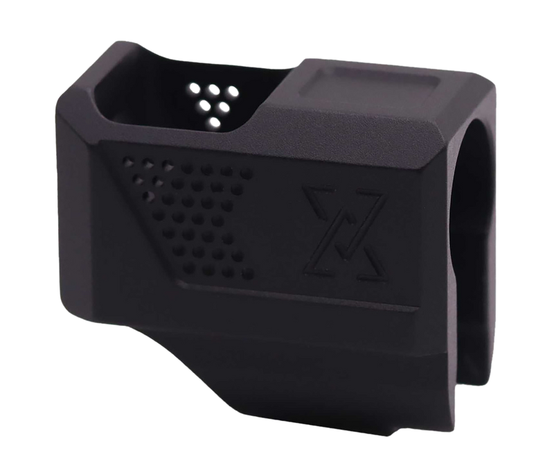 The True Precision True-Lock Ultimate Compensator is a muzzle device designed for the S&W M&P Shield platform. Constructed from 7075 T6 aluminum with Type 3 hard anodize finish, it provides durability and corrosion resistance. This compensator helps manage recoil and muzzle rise for improved shot control.