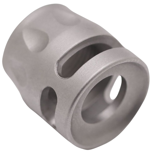 The True Precision Micro Compensator is a Y-Type muzzle device designed for 9mm and .380 ACP handguns with 1/2"x28 threaded barrels. Constructed from 416R stainless steel with a satin finish, it measures 4.5" in length and 0.8" in height. This compensator threads directly onto compatible barrel extensions to reduce muzzle rise and recoil.