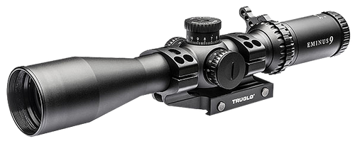The TruGlo Eminus is a 6-24x50mm precision riflescope featuring a 30mm tube with dual illuminated (green/red) TacPlex MOA reticle. Quarter-MOA locking target turrets allow for precise shot tracking and D.O.P.E. dialing. Multi-coated optics, fog-proof and shock-resistant construction, with 3.46-3.5" eye relief and parallax adjustment from 15 yards to infinity.
