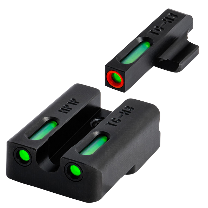 This is a complete front and rear sight set featuring tritium and fiber-optic technology for reliable illumination in low-light and daylight conditions. Designed specifically for the Springfield Armory Hellcat, the sights feature green tritium elements with an orange outline on the front sight and a snag-free design with CNC-machined steel construction protected by a rust-resistant Fortress Finish.