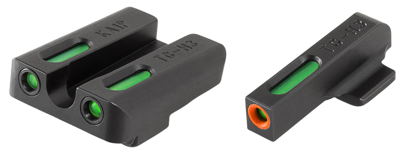 TruGlo TFX Pro day/night sights featuring green tritium and fiber optic technology with orange outline front sight for rapid target acquisition in any lighting condition. Designed for Kahr K-Series handguns with CNC machined steel construction and an aggressive rear sight design for emergency one-handed operation.