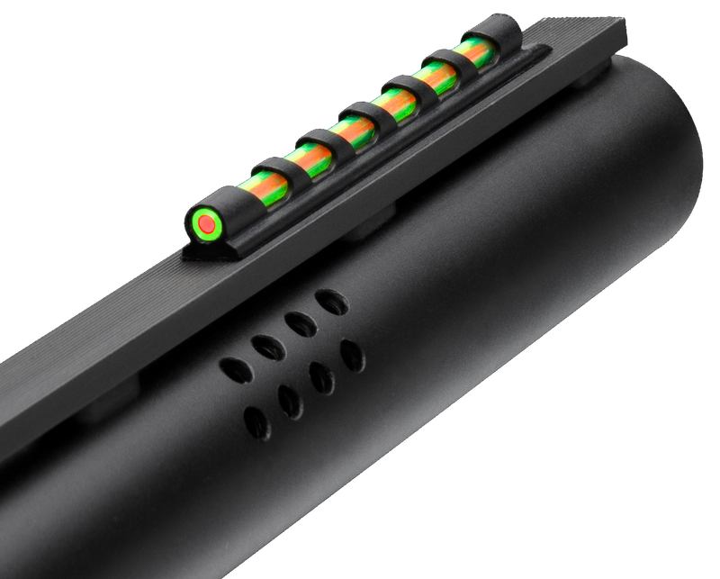 Universal fiber optic front sight designed for all ventilated rib shotguns regardless of width or tapering. Features dual color green and red fiber optic elements with an extremely low profile CNC machined steel frame and .120" fiber diameter. Endorsed by Ducks Unlimited for hunting applications.