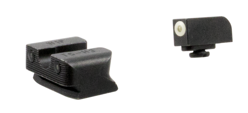 These Tritium Pro night sights feature green tritium vials with white outline front sight and green tritium rear sight, designed specifically for Walther P99 and PPQ handguns. The sights use CNC machined steel construction with a square front/U-notch rear design and include a FOCUS-LOCK ring on the front sight for faster target acquisition. Constructed with bright, durable tritium that provides illumination in low-light conditions without requiring batteries.