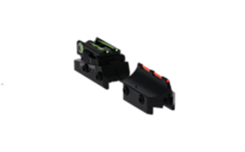 Universal fiber optic sight set designed for ventilated rib shotguns, featuring a red fiber optic front sight and green fiber optic adjustable rear sight. Includes two interchangeable rear sights with full windage and elevation adjustment, integrated level, and all-metal CNC machined steel construction. Endorsed by the National Wild Turkey Federation for serious turkey and deer hunters.