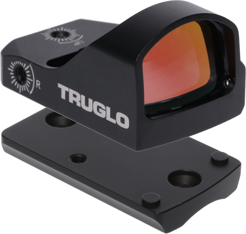 The Truglo Tru-Tec Micro Red Dot features 1x magnification with a 23mm x 17mm objective lens and a 3 MOA red dot reticle. It offers unlimited eye relief, 10 brightness settings with CR2032 battery included, and is fog proof, water resistant, and shock resistant. This sight comes with a Remington receiver RMR mount and is constructed from aircraft-grade aluminum with multi-coated optics.