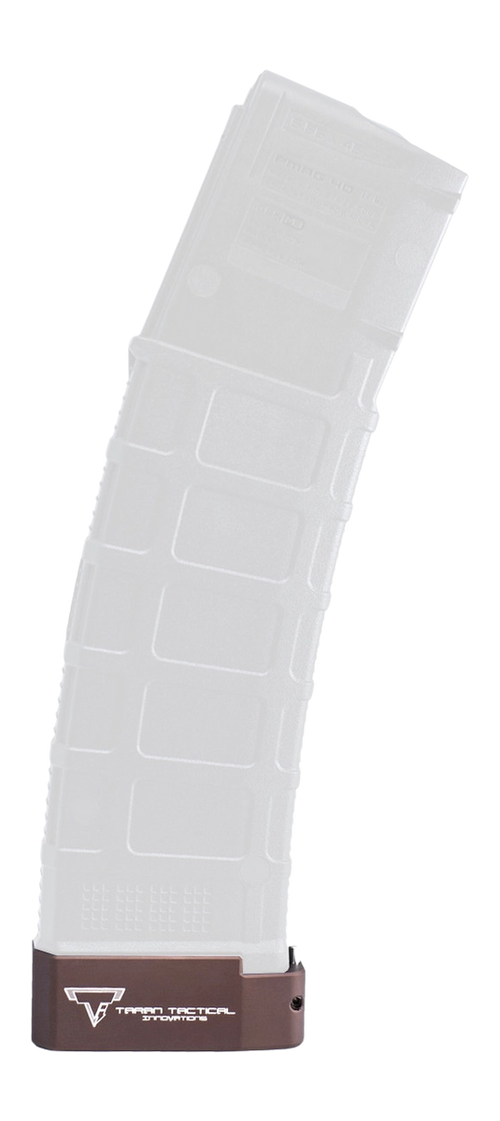 This is a +5 round capacity base pad extension for AR-15 PMAG magazines in .223/5.56 NATO. The Taran Tactical Firepower base pad features a hard coat anodized flat black finish and is designed to increase magazine capacity. Note: This product is subject to state restrictions in CA, CO, CT, DC, DE, MA, MD, NJ, NY, RI, VT, and WA.