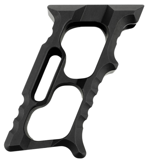 The Tyrant CNC Handstop Halo is a black aluminum accessory designed for AR-15 platforms, measuring 7.4" in length with a 4.8" width and 1.2" height. This handstop provides an ergonomic stopping point for shooter positioning on the handguard. Made from durable aluminum construction, it offers a lightweight solution for improving weapon control and handling.