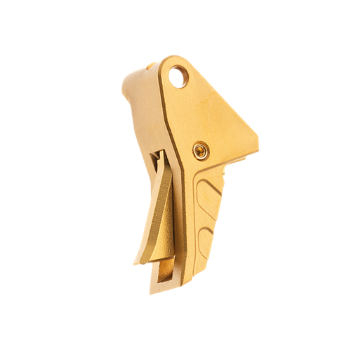 Tyrant CNC Improved Tyrant Trigger System (I.T.T.S) trigger shoe designed for Springfield Echelon pistols. Features anodized aluminum construction with black shoe and gold blade. Direct replacement trigger component with drop-in installation.
