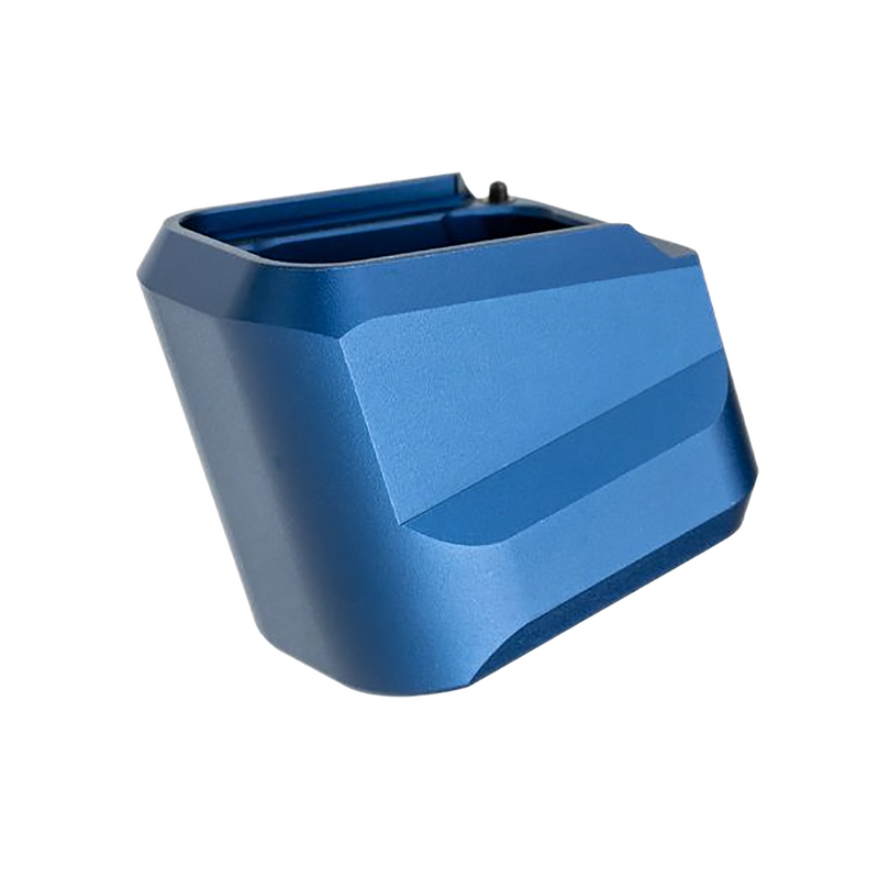 This magazine extension is designed for H&K VP9, VP40, and VP30 pistols and adds 5 rounds of capacity. Constructed from blue aluminum for durability and corrosion resistance. Compatible with factory H&K magazines for these pistol models.