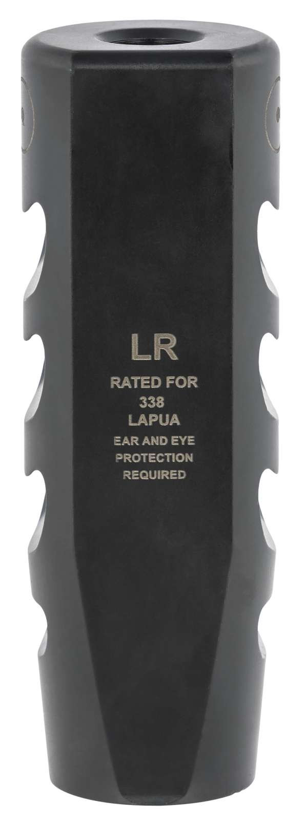 The Ultradyne Apollo LR is a compensator designed for .338 caliber rifles with .625x24 threading. This muzzle device reduces recoil and muzzle rise through a ported design, allowing faster follow-up shots and improved target tracking.