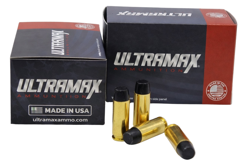 Ultramax 45 LC ammunition loaded with 325-grain hollow-point jacketed hollow cavity (HTJHC) projectiles. This centerfire handgun round comes in 20-round boxes with 10 boxes per case, offering reliable performance for revolvers chambered in 45 LC.