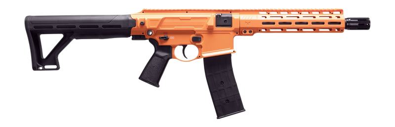 .68 caliber air pistol in orange and black finish. Designed for self-defense training and recreational use. Specifications for barrel length and capacity not available in source data.