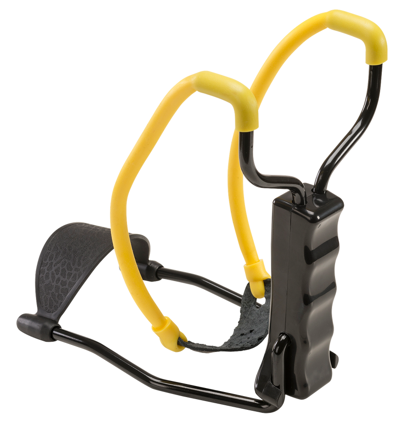 The Umarex NXG ST11 is a compact slingshot featuring yellow rubber powerbands and a black molded handle for comfortable grip. Designed for recreational use, this slingshot measures approximately 10.7" in length with adjustable bands suitable for targets from 2.75" to 9". The single-shot capacity and lightweight design make it portable for outdoor activities.